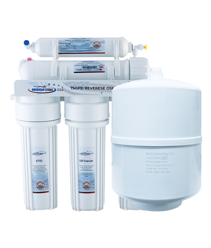 The American Stars 75GPD Domestic Under-Counter Reverse Osmosis System is designed to provide high-quality purified water directly from your tap. Using a 5-stage advanced filtration process, it effectively removes sediments, chlorine, heavy metals, and harmful contaminants, ensuring your drinking water is safe, refreshing, and pure.