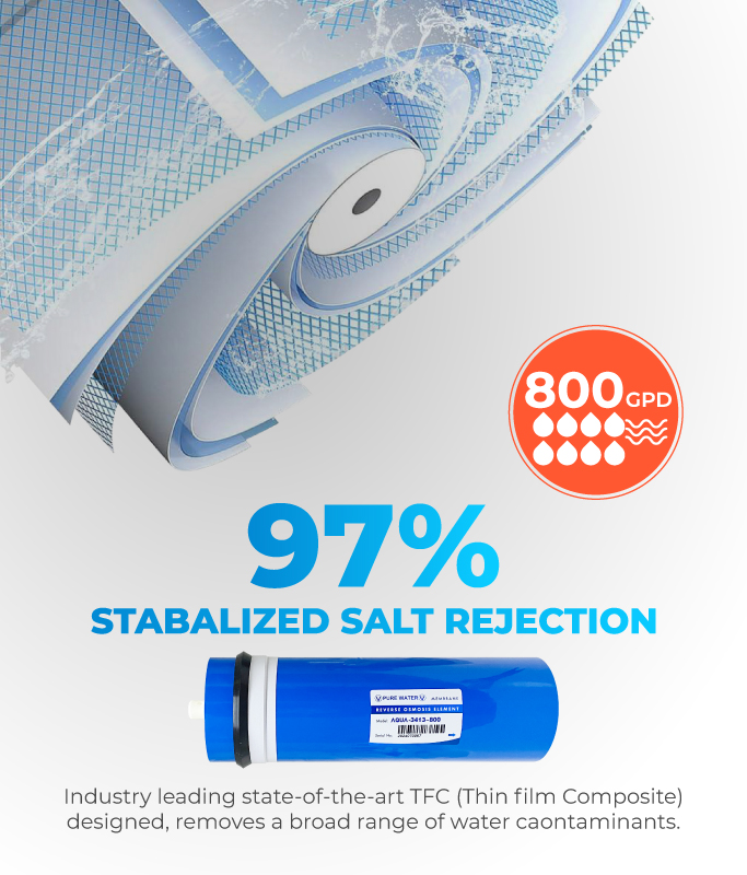 - High Capacity Output: 800 GPD output ensures plenty of purified water.