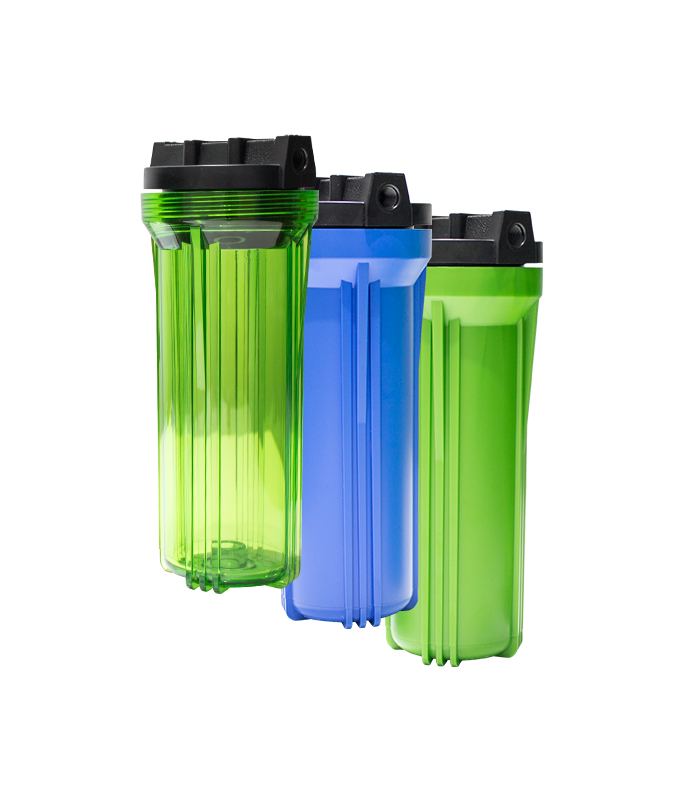 10″ Standard Filter Housings are manufactured of durable polypropylene or clear Styrene-Acrylonitrile (SAN). These housings are available in 10″ lengths, while the caps are available with 1/4″ or 1/2″ NPT connections.nnOpaque 10″ Standard filter housings, molded from rugged reinforced polypropylene, offer outstanding chemical compatibility and are ideal for use in a variety of low-flow applications. These applications include under sink and countertop residential filtration, pre- and post-reverse osmosis filtration, recreational vehicle filtration, food service, and humidifying systems.nnClear 10″ Standard Filter housings offer on-site examination of flow, performance, and cartridge life. They are also ideal for a variety of applications.n