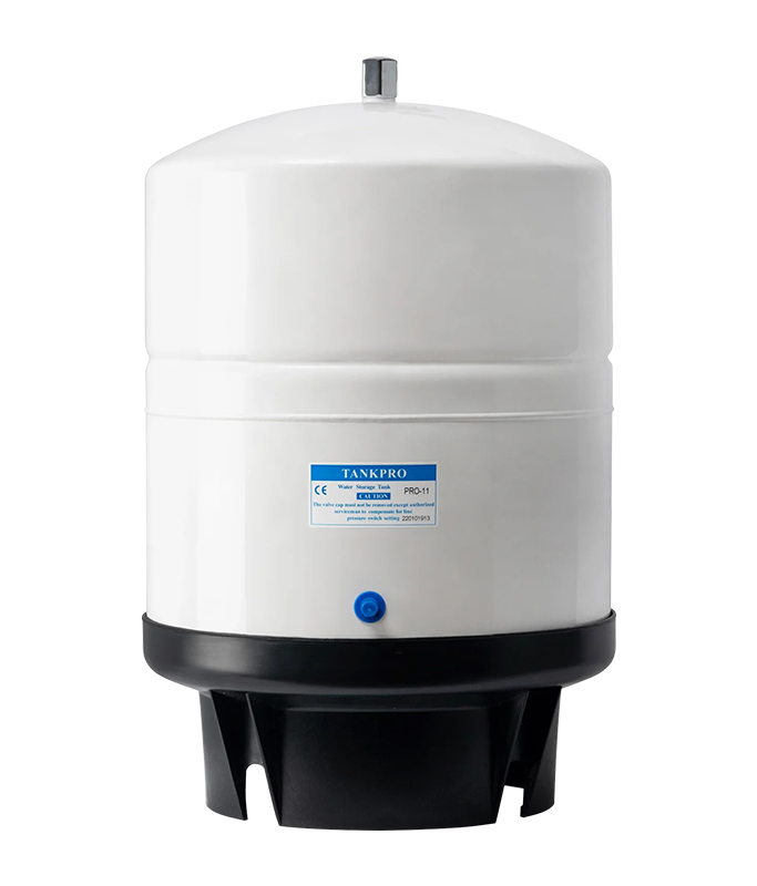 The 11 G Steel RO Storage Tank is a reliable, pre‑pressurized vessel built to work with reverse osmosis systems. It features a virgin polypropylene liner and a high-grade chlorobutyl diaphragm, ensuring your water remains tasteless, odor-free, and free from contaminants. The steel shell provides strong structural integrity, with deep‑drawn steel domes and precision weld seams. Because this tank holds compressed RO water, your system can deliver clean water on demand without waiting for filtration cycles.