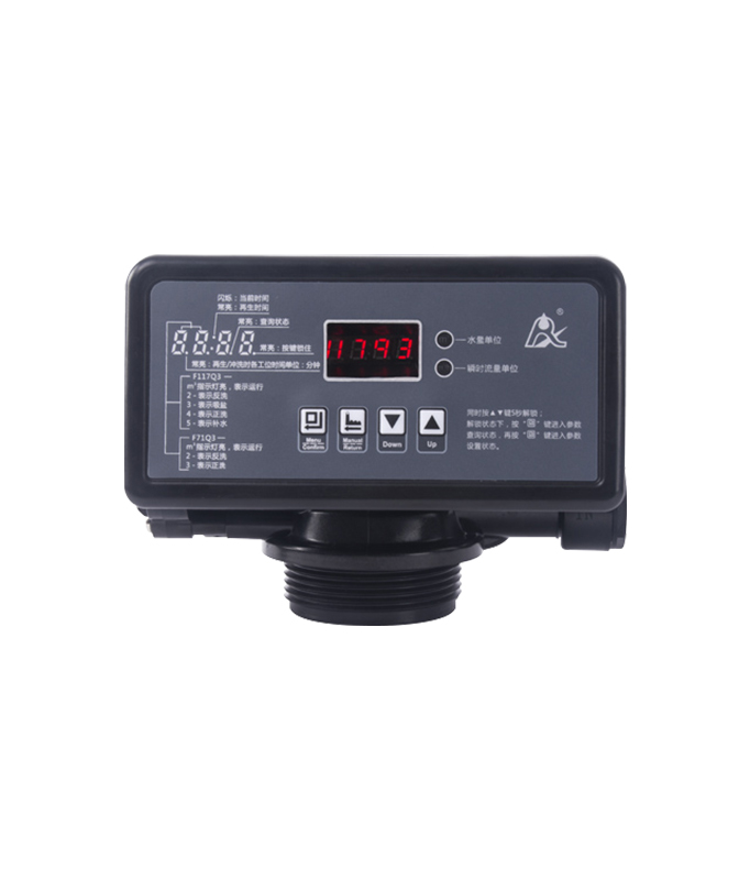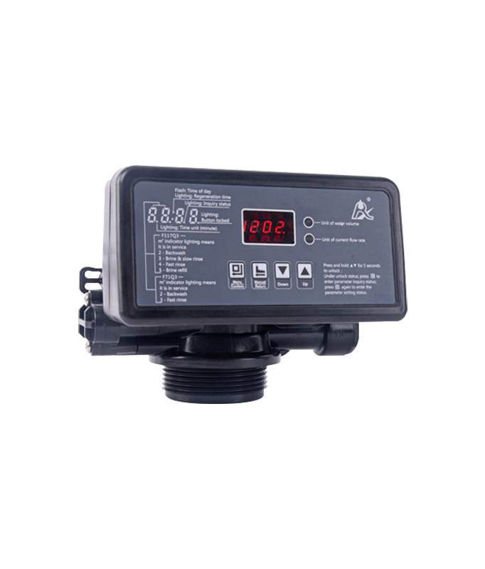 nFeaturing a flow rate of 3m³/h, the F117Q1/Q3 automatic multiport softener valve adopts a planar and corrosion-resistant gasket for opening and closing. The different functions such as service, backwash, brine and slow rinse, brine refill, and fast rinse can be realized through parameter modification. The F117Q1 is a timer clock type while F117 Q3 is a meter type.