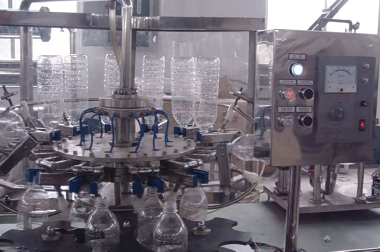 The washing valve opens and the washing liquid enters the bottle. First, it is washed with a sterilizing agent, then with fresh water. After it is washed twice, the bottle is driven out by the driving wheel of the bottle exit under the help of the track. The bottle washing is finished.